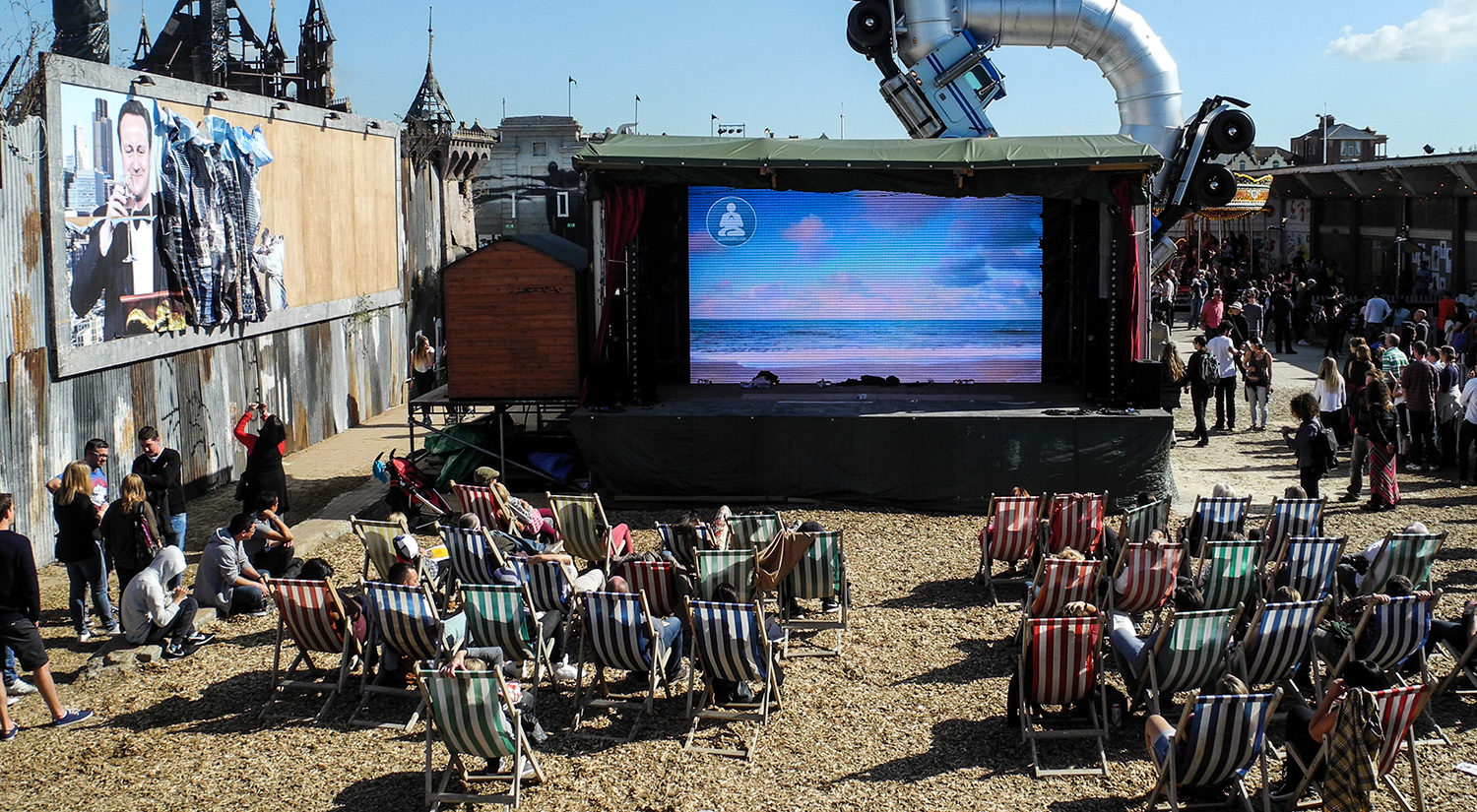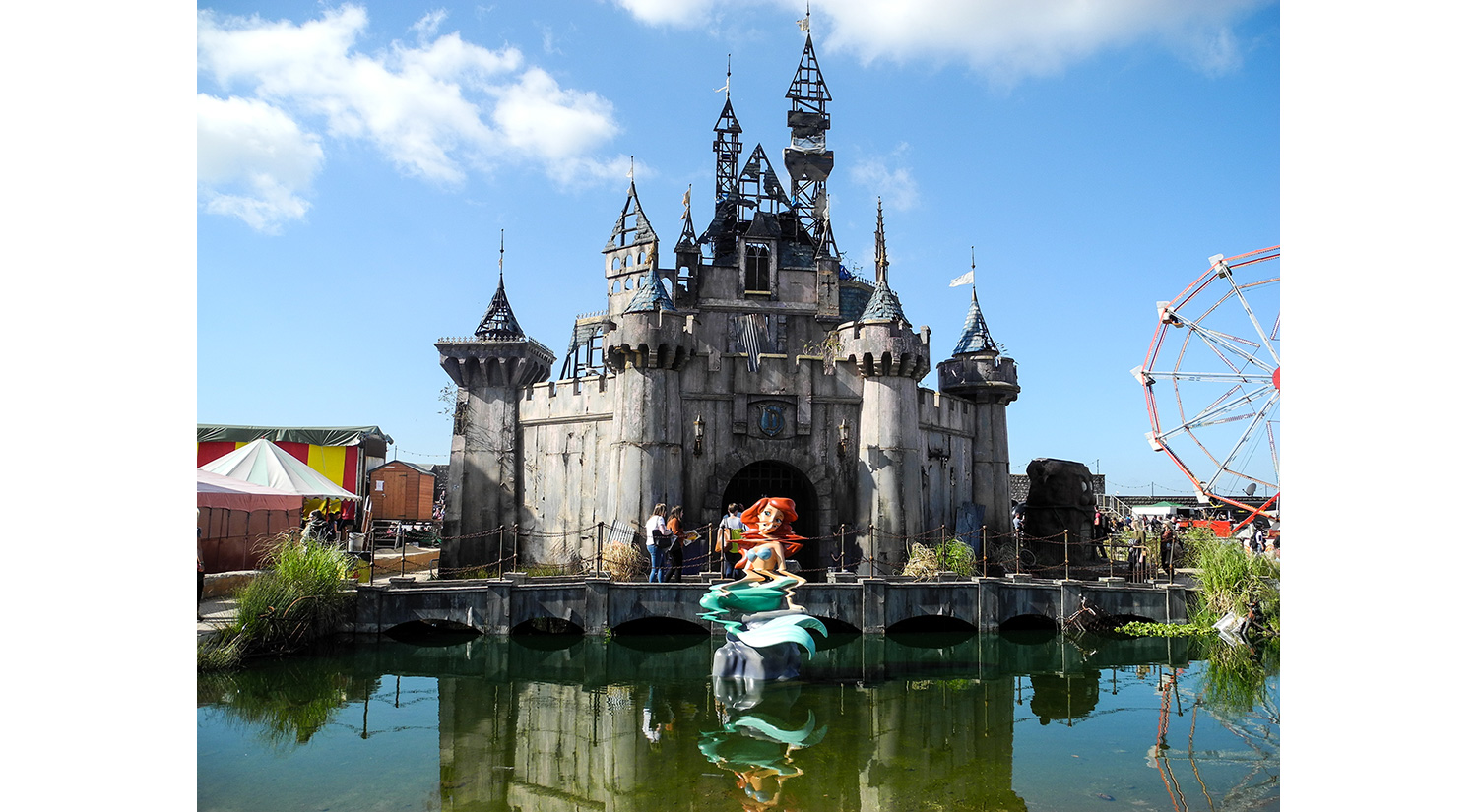 Dismaland, the 'family theme park unsuitable for children', was a temporary art project organised by Banksy in Weston-super-Mare, England. It was an incredible exhibition, with works by 58 artists including Damien Hirst, Ronit Baranga, Dietrich Wegner, Jenny Holzer and Jimmy Cauty. Banksy created a dystopian bemusement park which reflected the injustice, exploitation and inequality of modern society.