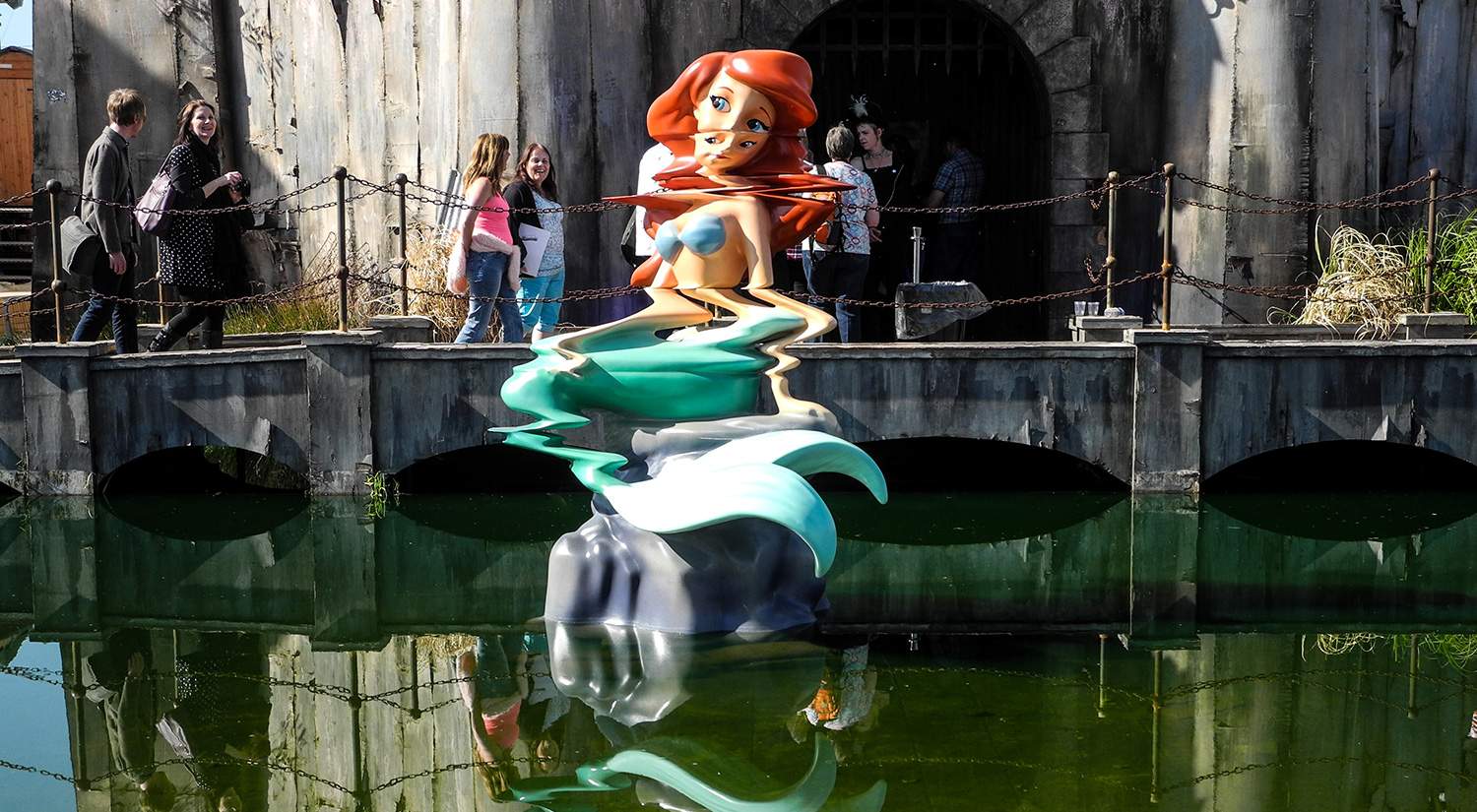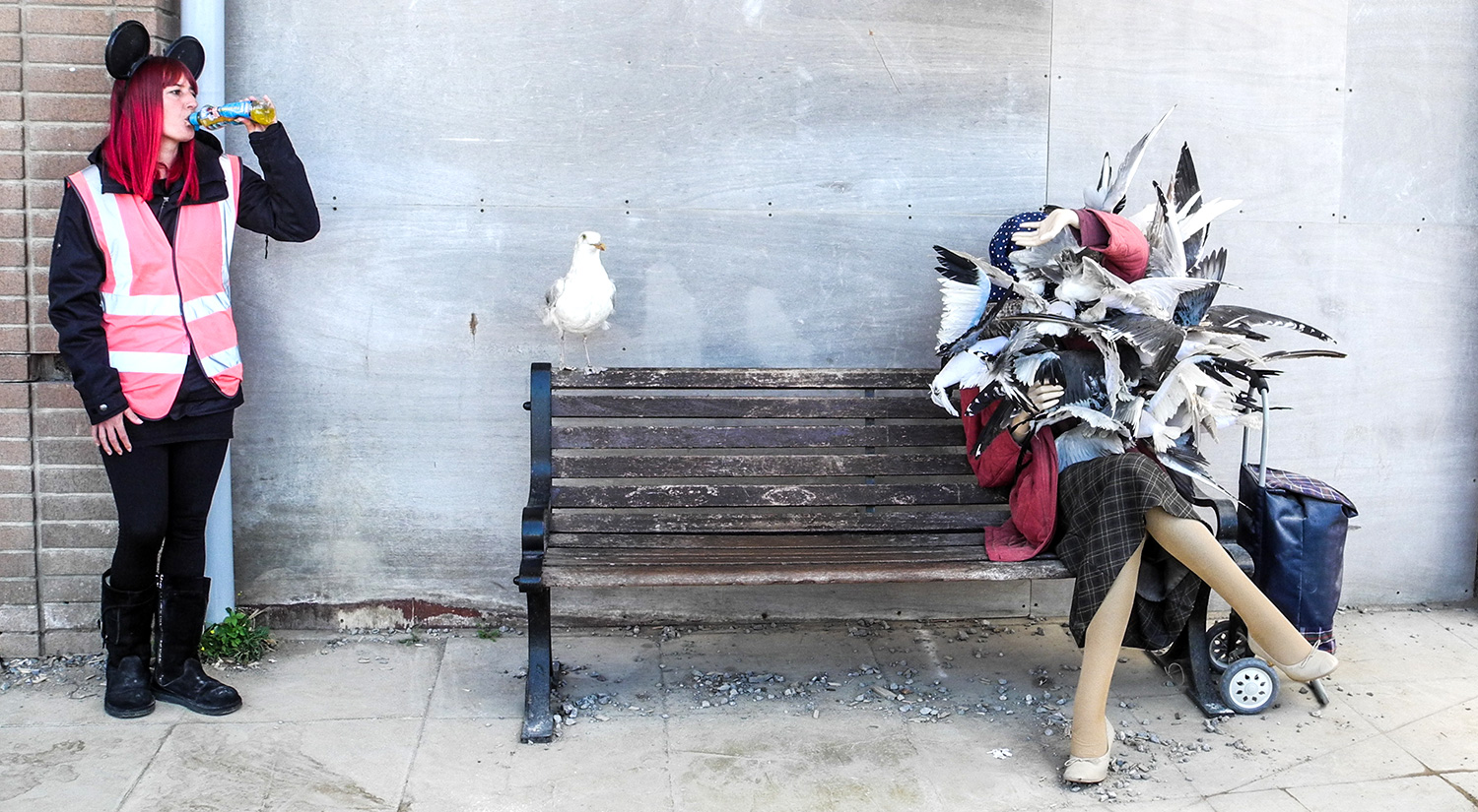 Greeted by disgruntled staff in high visibilty jackets and novelty ears, visitors were made to pass through mock security screening, and emerged in front of a destroyed fairy tale castle. Inside, the princess had died in a horse and carriage accident whilst trying to escape from pursuing paparazzi. Other installations included ‘Pocket money loans for kids’ (whilst I was there children played non-ironically in the sand pit – which felt strangely out of context), Mini Gulf (a crazy golf course themed around oil), a Ferris wheel, refugee boats, intimidating seagulls. And, of course, you had to exit through the gift shop.